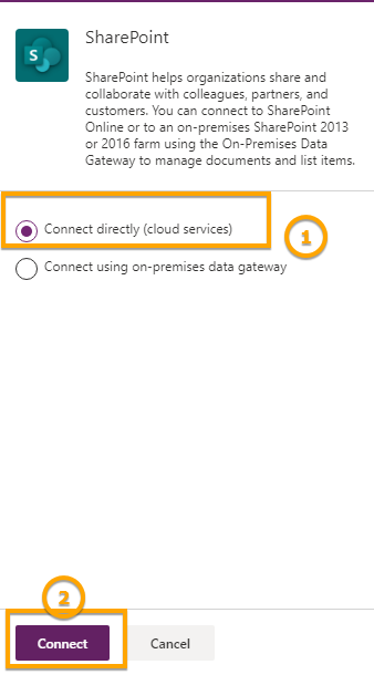 Step – Once selecting the connector it will ask you to connect from On-premise or online services > select online and click connect