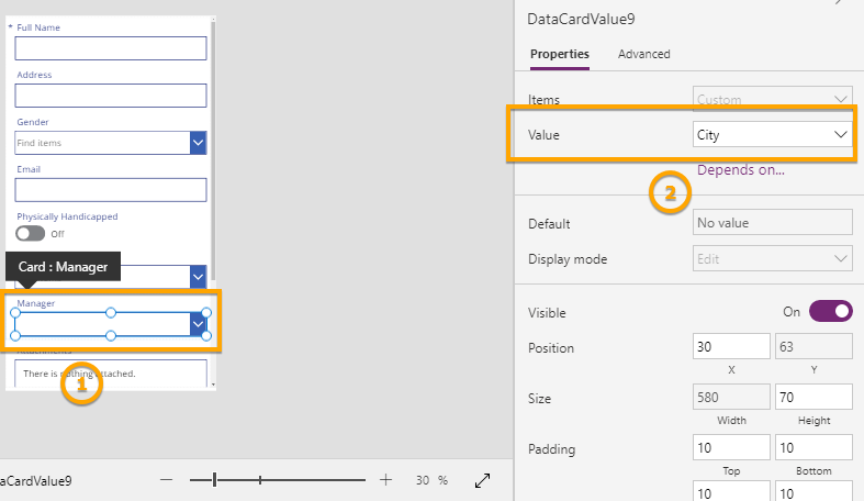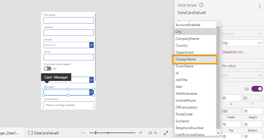 Step – Select the Manager Dropdown > In Right Panel > Select Value. By default it is City > Change it to Display Name