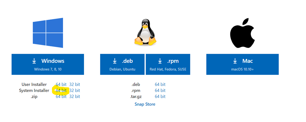 https://code.visualstudio.com/ – Please make sure you download System installer(refer below screenshot)
