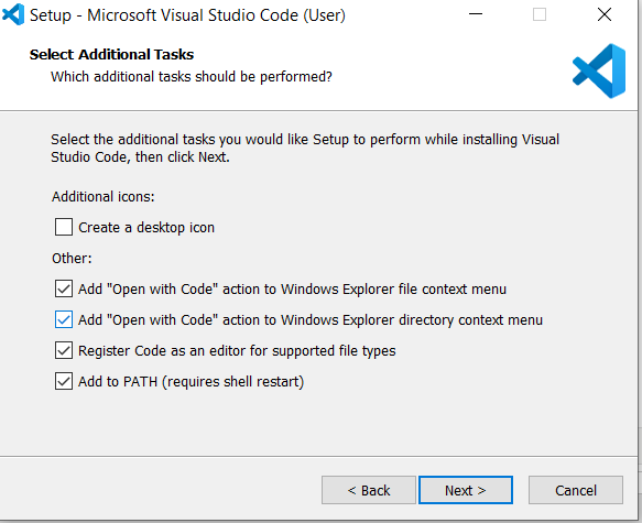 Run the setup wizard and follow along with the instructions to install, it is pretty much self-explanatory. In Additional task link below, use the below preferred option. It will help you later.