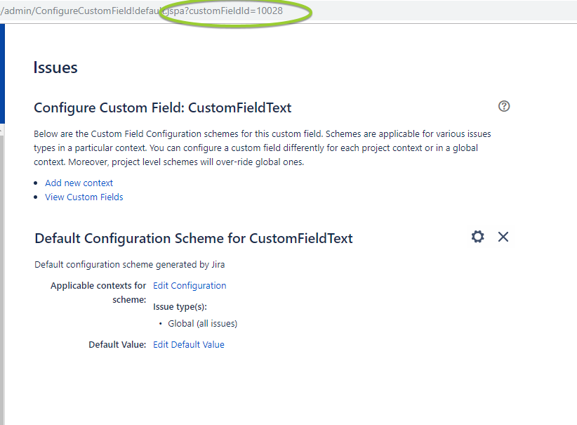 Go to Settings->Issues->CustomFields, we will see a list of all fields here. Edit the Target field and it will open below the page. Get Id from query string parameter.